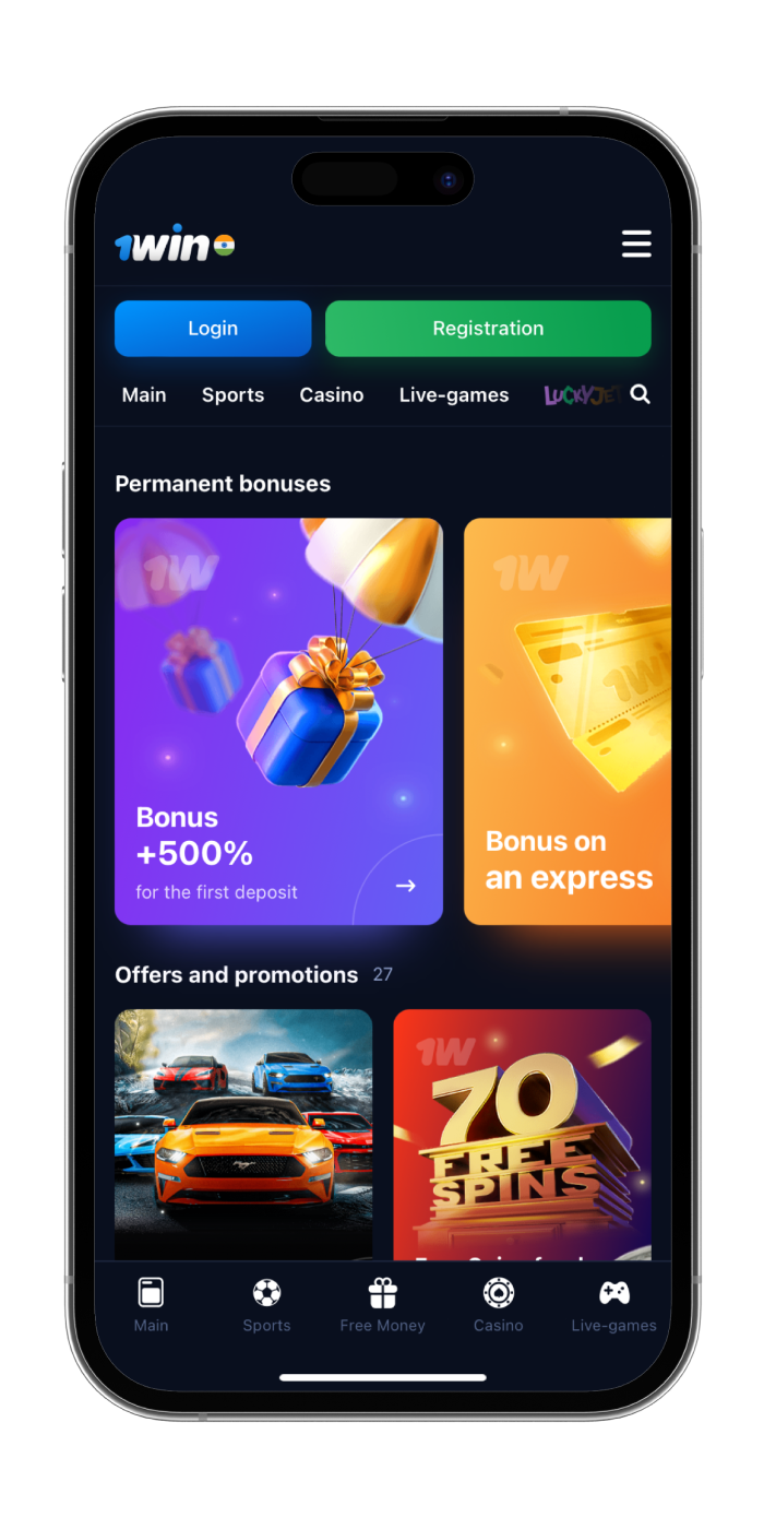 • 500% deposit bonus package. After the 1Win original app download, registration, and deposit, 200% will be rewarded. The remaining 300% is allocated to the next three deposits.